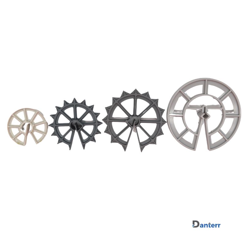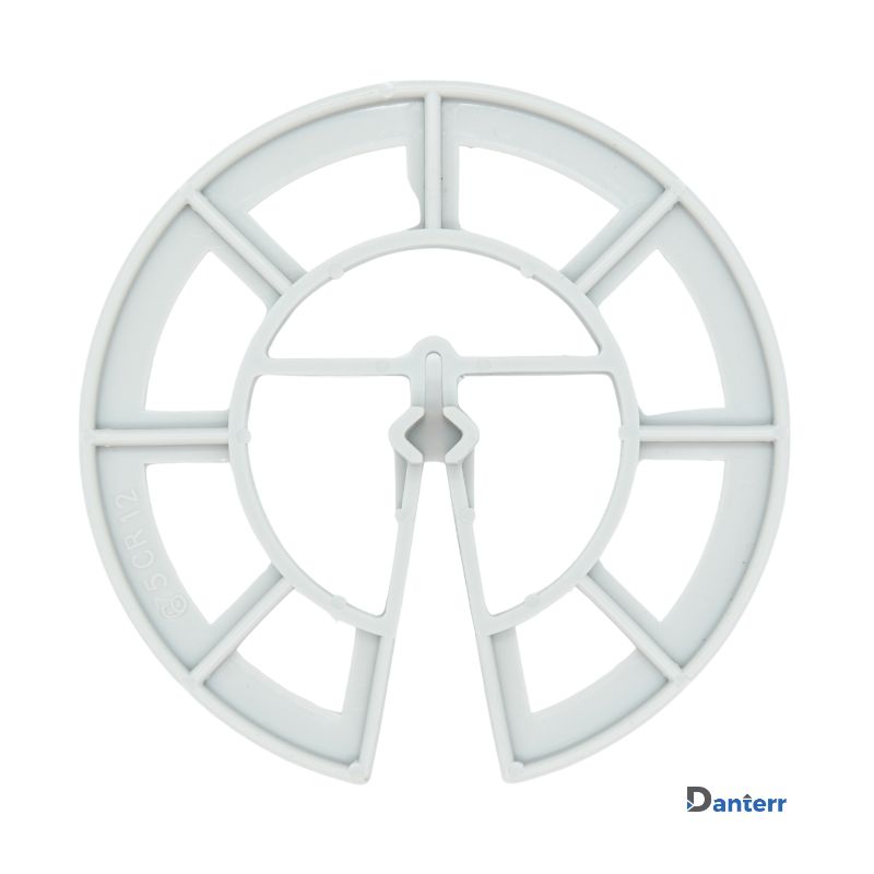 Danterr’s circular spacer is a durable, high-performance solution for maintaining uniform cover around reinforcement in civil precast, conduit systems, and commercial concrete structures. Manufactured from tough grey plastic, this plastic circular spacer ensures 360-degree coverage that remains consistent regardless of rebar size. Its wagon wheel-style open design allows for optimal concrete flow, preventing voids and maintaining structural performance.